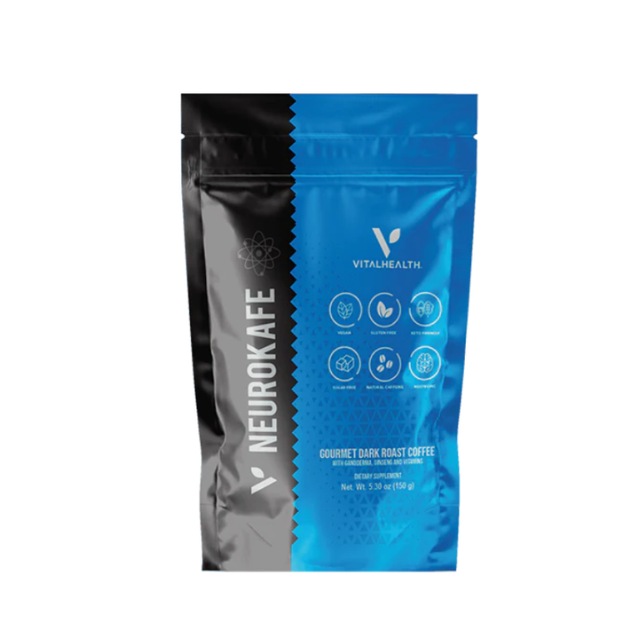 Instant dark roast coffee (Coffea arabica), Inulin, Bacillus coagulans (Probiotics), Ganoderma mushroom extract (Ganoderma lucidum), Ginseng extract (Panax ginseng), and Fulvic acid.
